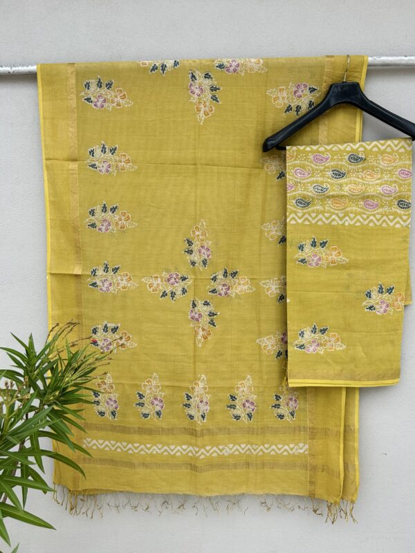Our Maheshwari Handloom Indo Asian Print Top Dupatta set is a celebration of artistry and fusion fashion. Handwoven by skilled artisans of Maheshwar, this ensemble combines the luxurious texture of silk by cotton fabric with intricate Indo-Asian inspired prints.