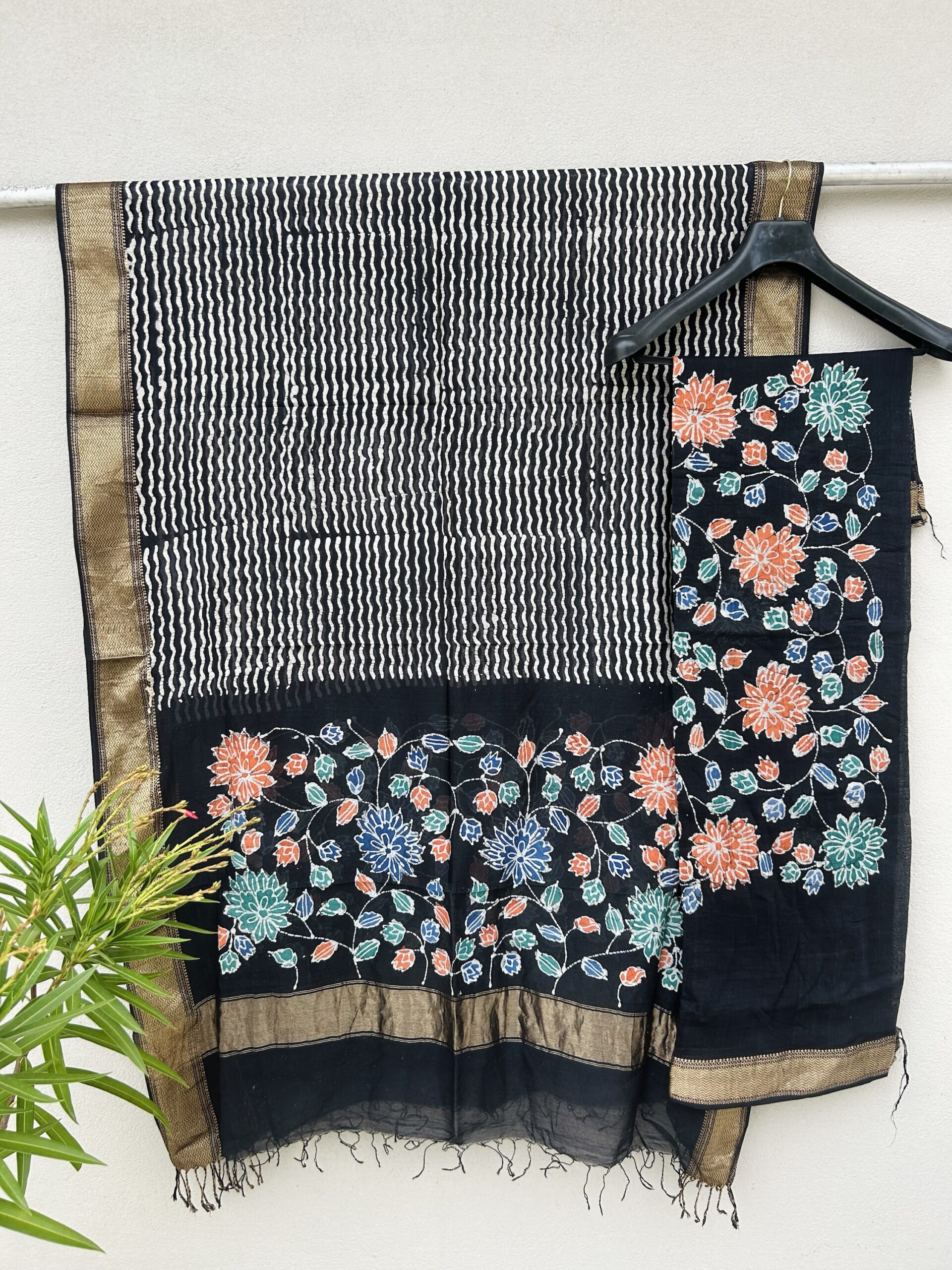 Be the first to review “Maheshwari Handloom Indo Asian Print Top Dupatta Black”