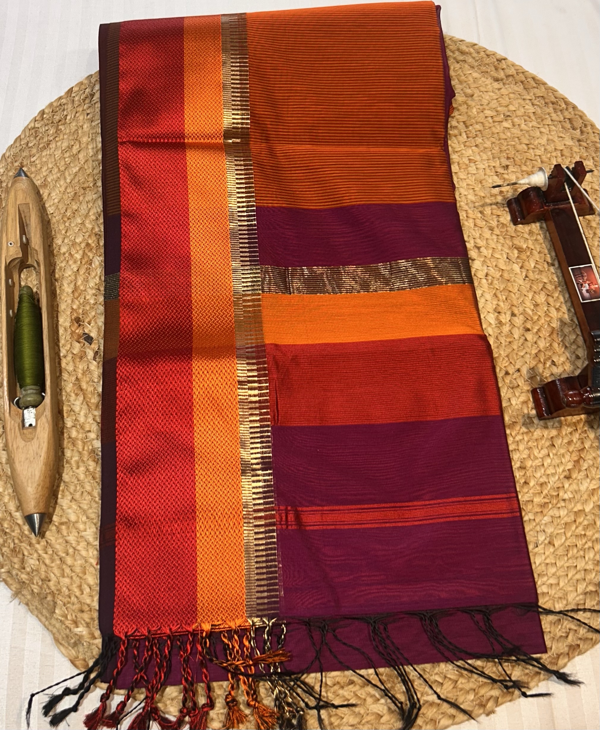 Considering the quality and authenticity, the price is totally worth it. This is not a machine-made saree; it is original handwoven Maheshwari from Madhya Pradesh.