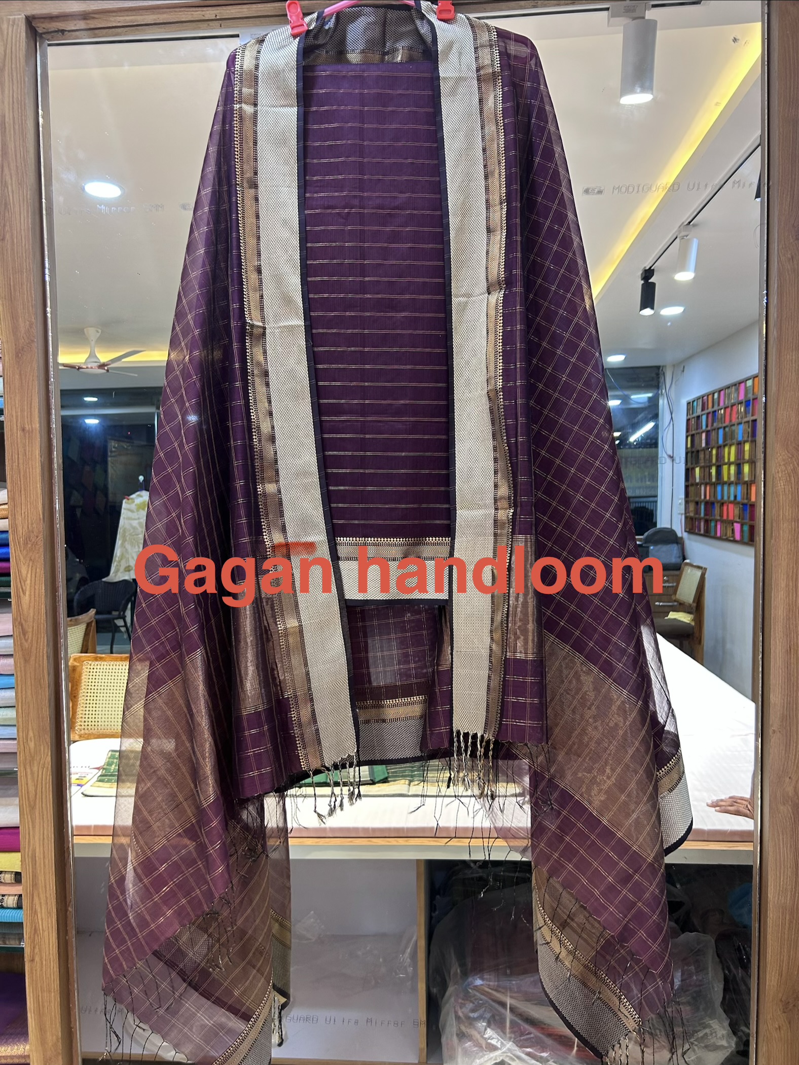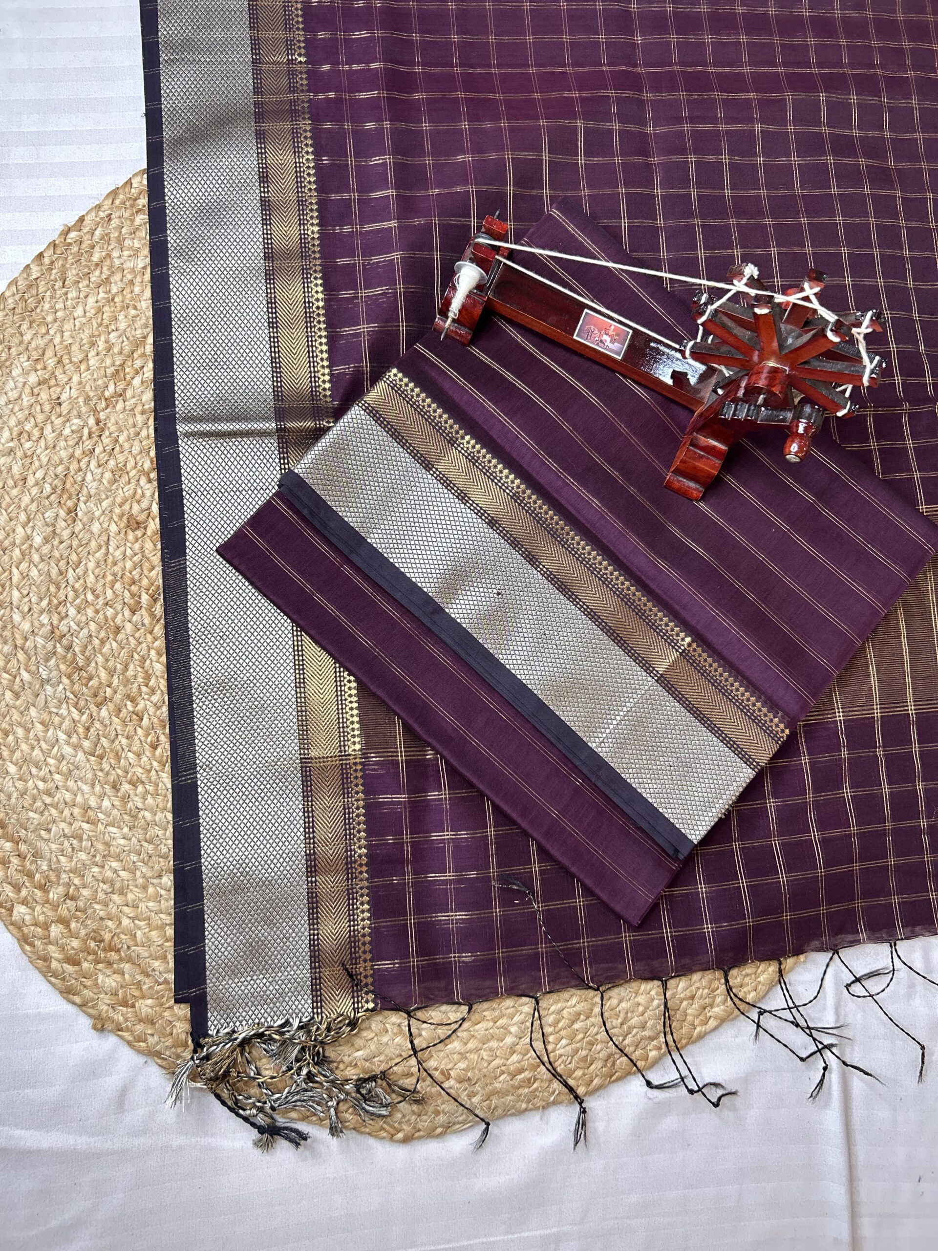 Maheshwari Handloom Top Dupatta – Jari Checks Design